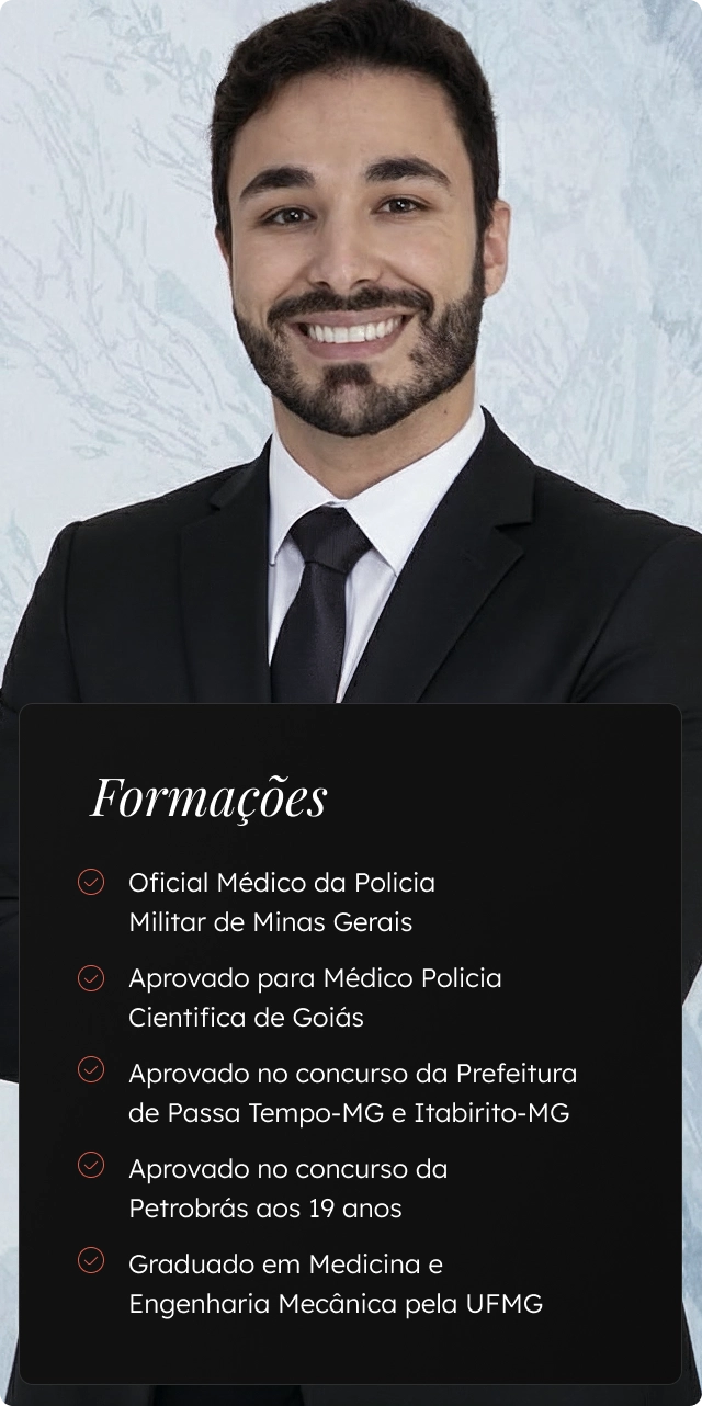 Médico e engenheiro mecânico formado pela Universidade Federal de Minas Gerais (UFMG), Rogério Braga é um profissional de múltiplas formações e resultados expressivos em concursos públicos.